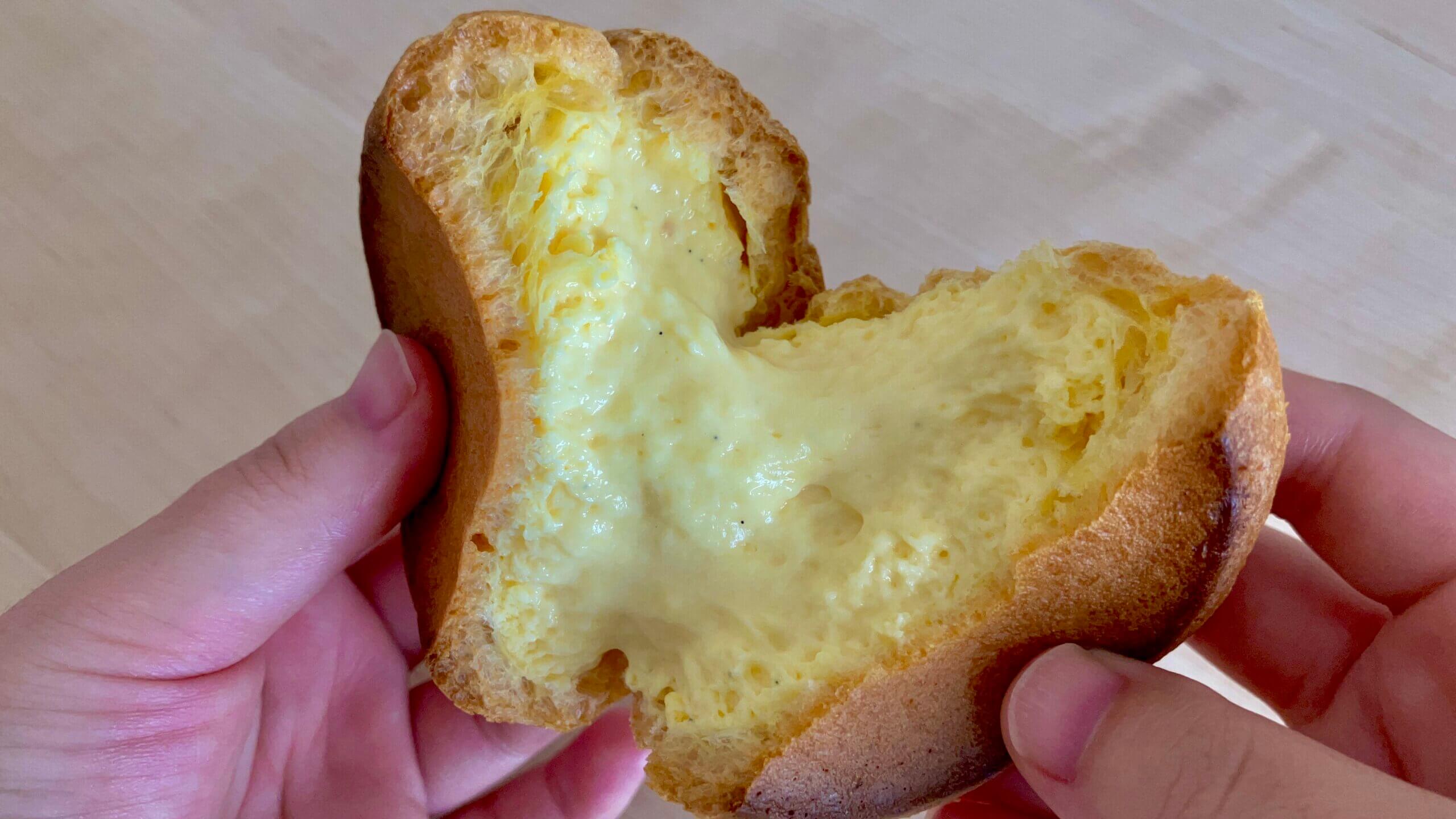 割ってみるとカスタードがたっぷり。カスタード好きにはたまりませんね!