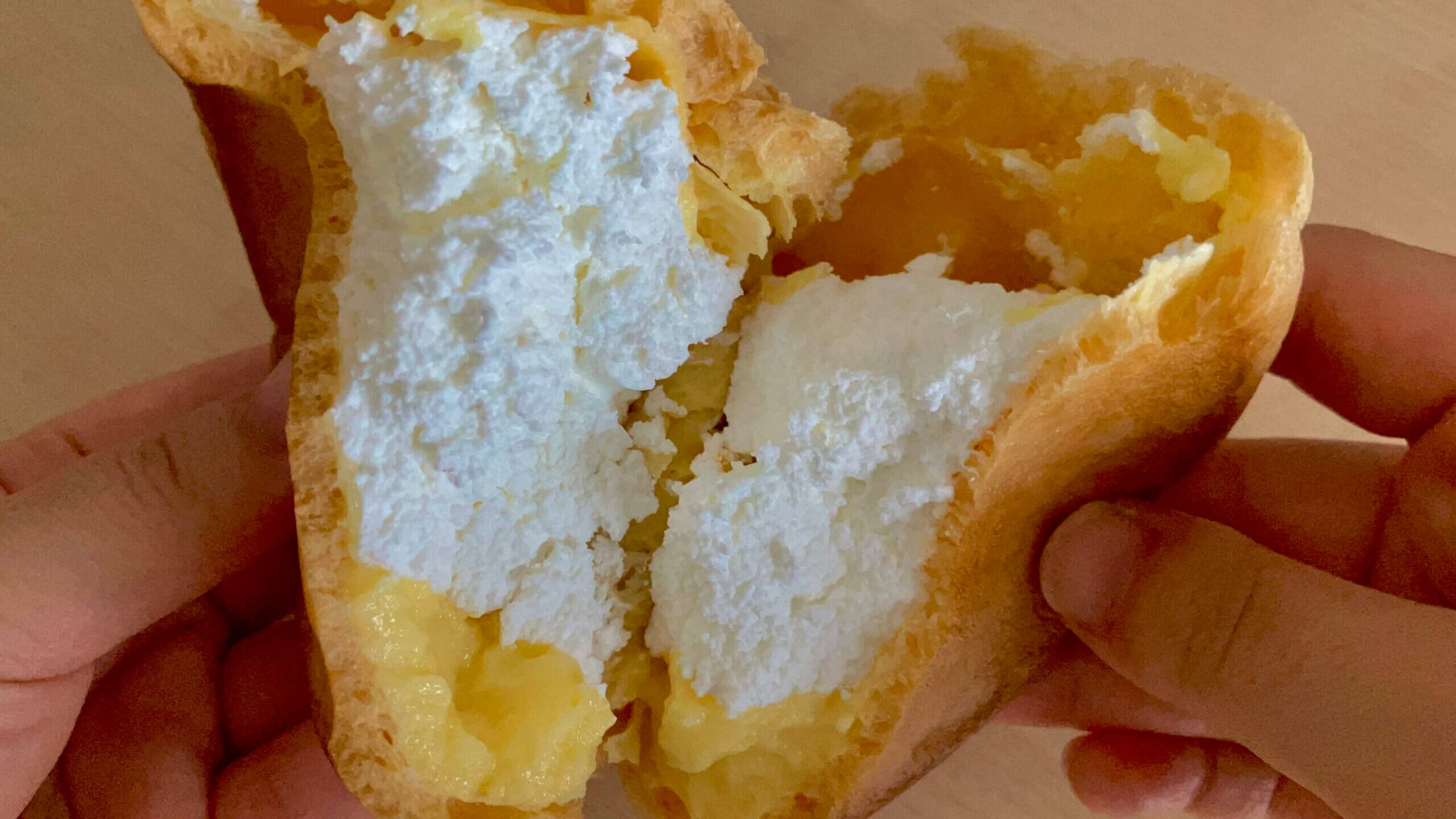 割ってみると、ホイップとカスタードは半々くらいの量が入っていました。
