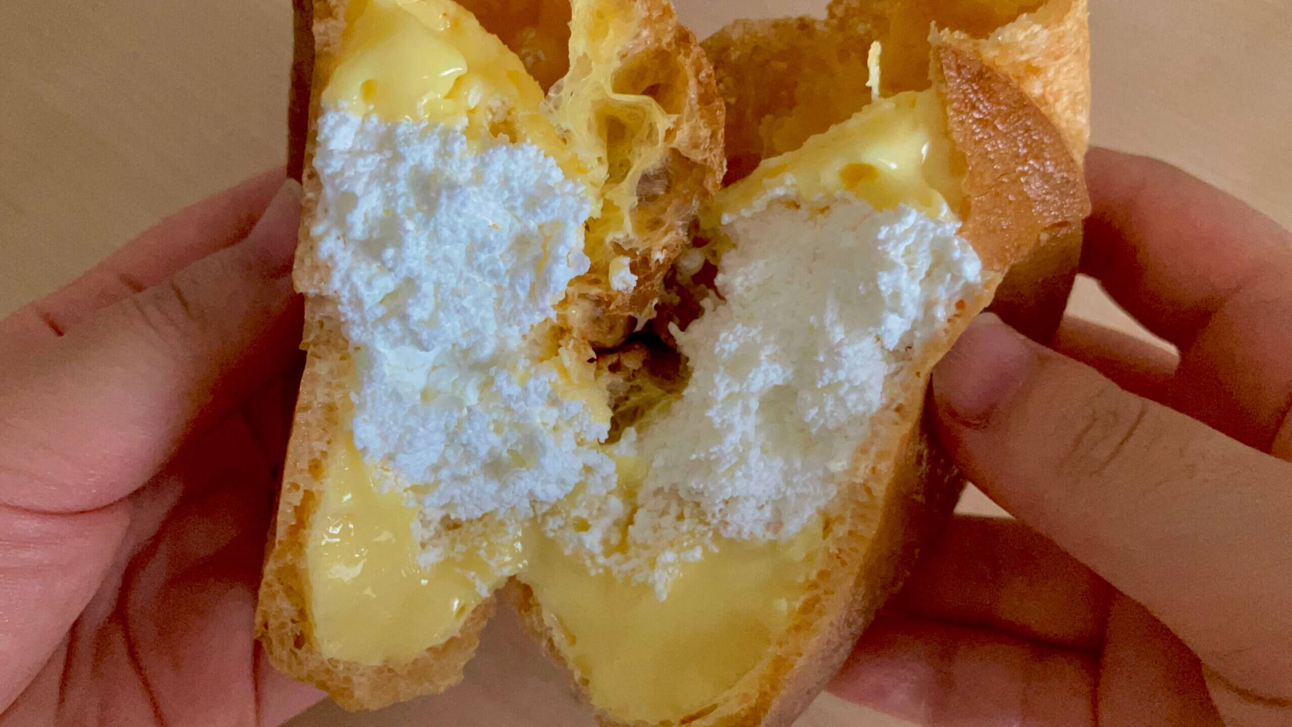 最後はミニストップ「大きなダブルシュー ホイップ&カスタード」をご紹介します。