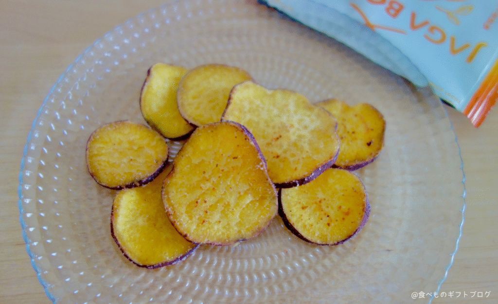 続いて新作の「炙りおさつチップス」から、「発酵バター味」をいただきます。