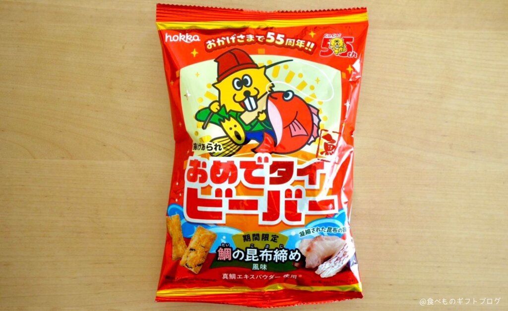 北陸製菓(HOKKA)創業55周年を記念して、期間限定販売されている「55周年おめでたいタイ!ビーバー」。